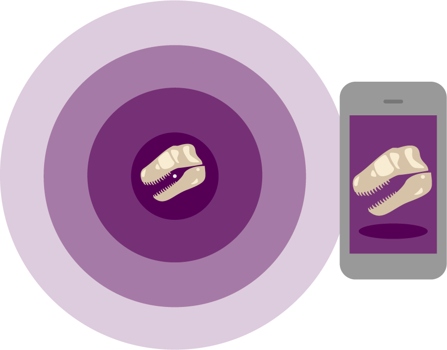 muBeはBLEビーコンを利用した屋内測位技術により、近くにある展示の解説を自動で通知し、表示します。